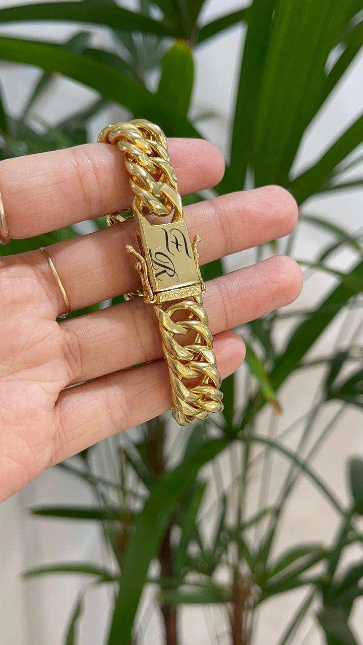 Personalize com até 2 iniciais ou primeiro nome. Antes de enviar o pedido, coloque o tamanho desejado da pulseira.